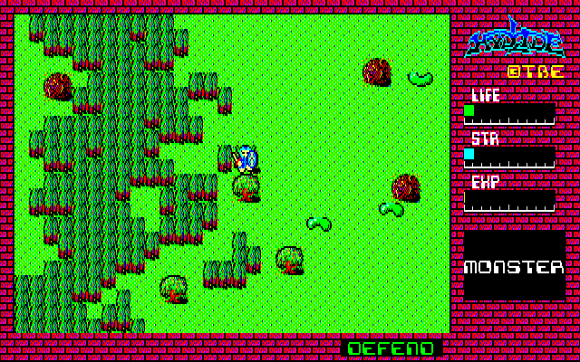 Screenshot of the original NEC PC-8801 version of Hydlide (1984), an early open-world action RPG.