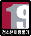 - 19[3]/청소년이용불가 (Teenager and child restricted) – Games with this rating are restricted to 19 and over. Equivalent to AO given by ESRB, 18 give by KMRB, or 18 given by PEGI.