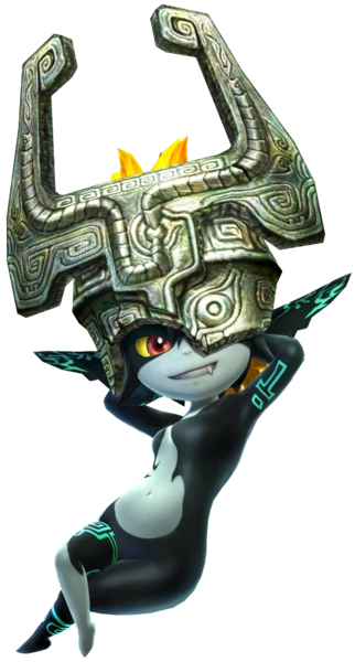 Midna is the game's title's "Twilight Princess", being a member and princess of the Twili tribe. She is cursed and turned into an imp when Ganon fuses himself with Zant and runs her out of the Twilight Realm. At the end of the game, Ganon is defeated and the curse is lifted, and she turned back into her true Twili Form.