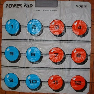The Power Pad is a mat-shaped game controller that was used on the Nintendo Entertainment System. It consists of input "buttons" on both sides of the mat for the player to step on, much like the game of Twister. On Side A there are 8 "buttons", while on Side B there are 12. It was originally sold bundled with the NES, then it was also sold separately.