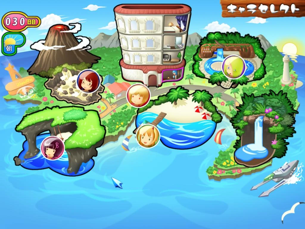 Sexy beach 3 is an open ended simulation game. You start at the Illusion Hotel Resort. In the hotel you are able to make a day pass, make a time of day pass or save your game. Once you are out of the hotel, you are able to date five female characters. On the left hand corner of the screen the game tracks the days you were on the island and the time of day it currently is.