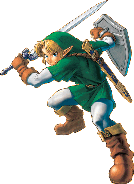 Ocarina of Time is separated into two time periods, separated seven years apart. There is the time when Hyrule was prospering, when Ganondorf was merely a Gerudo honoring the King. Link was a boy (Young Link as he was called in Super Smash Bros. Melee) wielding a Kokiri Sword, living in Kokiri Forest. However, after Link opens up the Temple of Time, he pulls the Master Sword from its resting place, sending him in the future and opening the way to the Light Temple. Unfortunately for Link and all living creatures in Hyrule, Ganondorf had followed Link, and took the opportunity to take the Triforce.